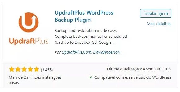 Além da possibilidade de agendar backups automáticos, o plugin também oferece os serviços de restauração de backups.